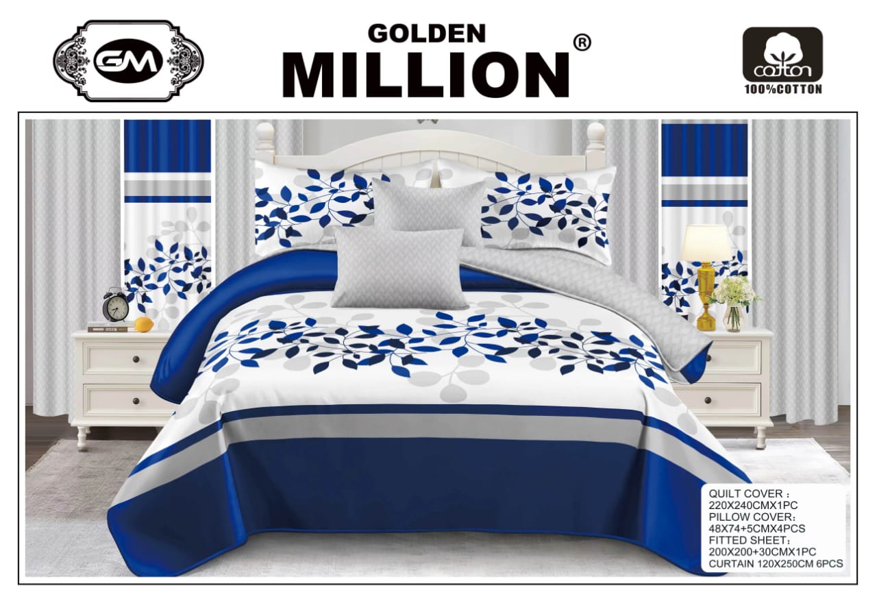 GOLDEN MILLION BRAND 12 PCS SETS BEDSHEET SET WITH CURTAINS