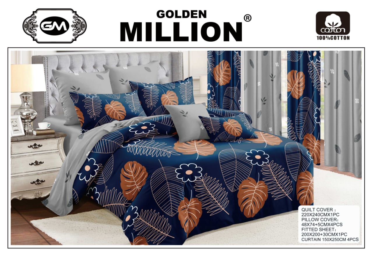 GOLDEN MILLION BRAND 10 PCS SETS BEDSHEET SET WITH CURTAINS