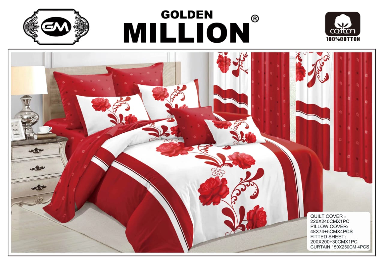 GOLDEN MILLION BRAND 10 PCS SETS BEDSHEET SET WITH CURTAINS